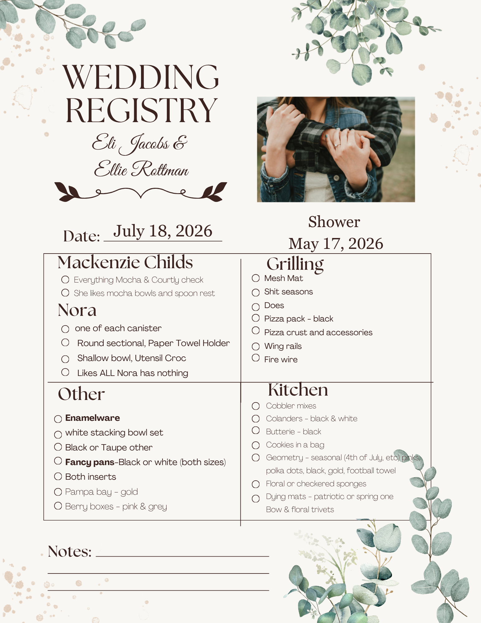 Eli Jacobs & Ellie Rottman Wedding Registry